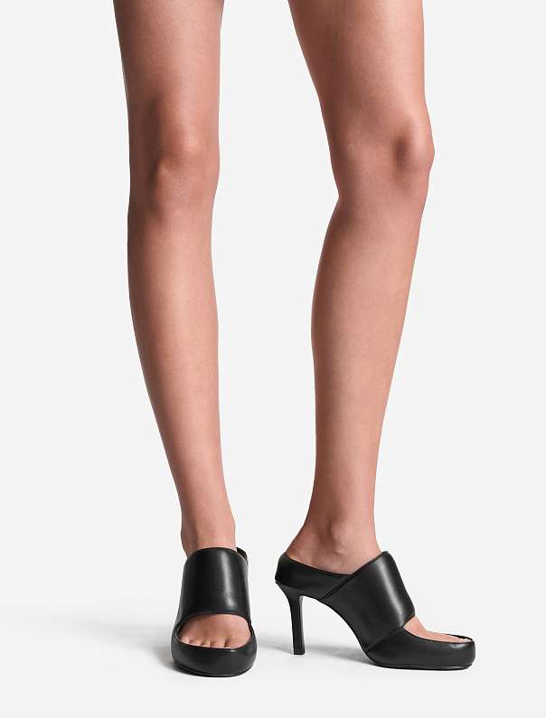 Puffed open-toe mules